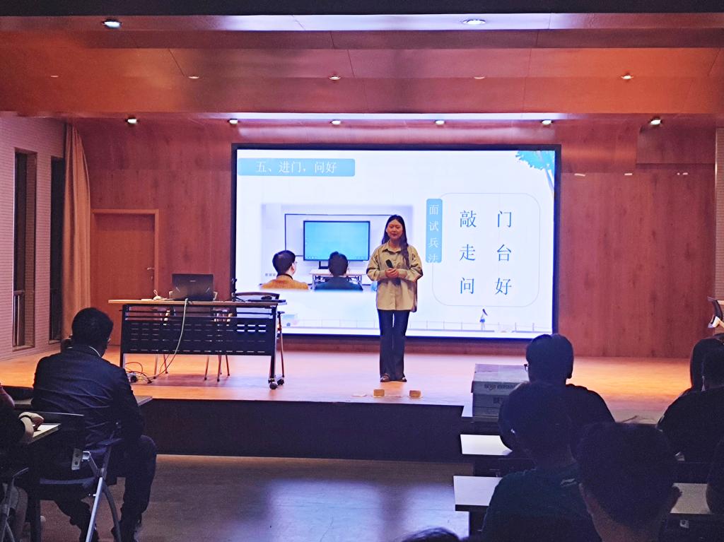 首先,中公教育任文静从考试类别、备考事项、考试题型等方面详细介绍了教师资格证的考试内容与流程,并在现场生动模拟了面试情境。随后,在汪正介绍我院历年考研情况的基础上,中公教育段鹏越结合大数据深入分析了当前考研形势,并从如何确定考研目标、备考时间安排、公共课复习方法等方面讲解了考研注意事项。最后,汪正鼓励同学们要坚定信心,摆正心态,合理规划,科学备考,争取顺利通过各门考试。