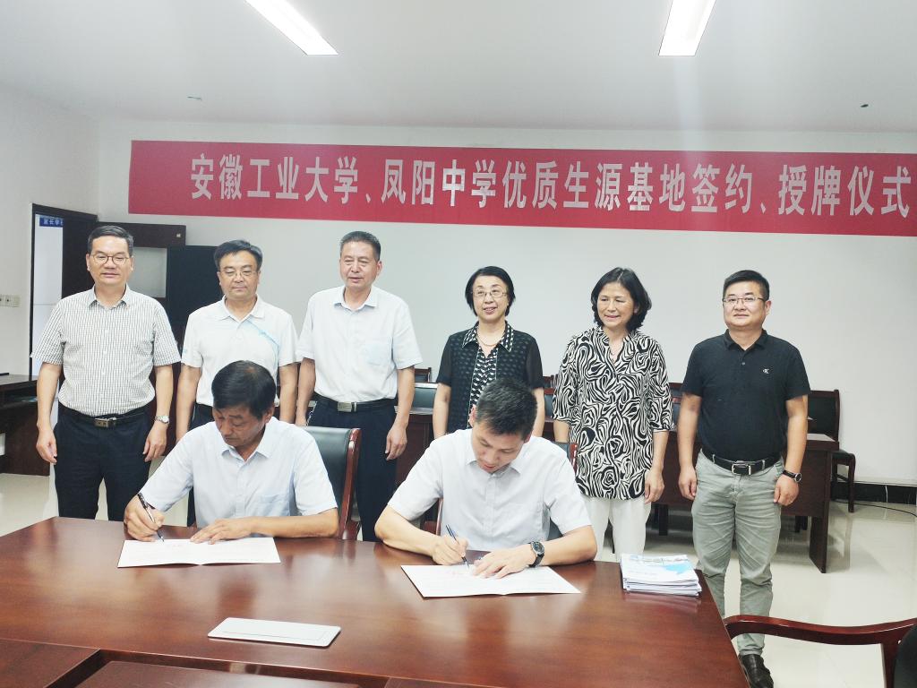 为进一步提升本科生源质量,加强大学与中学的联系、交流,促进高校选才和中学育才,6月28日,bwin必赢线路检测党委常委、副校长顾明言等一行五人前往安徽凤阳中学举行优质生源基地签约授牌仪式。凤阳中学校长陈勋刚、校党总支书记王龙香、副校长高怀宝、万勇等全程陪同。
