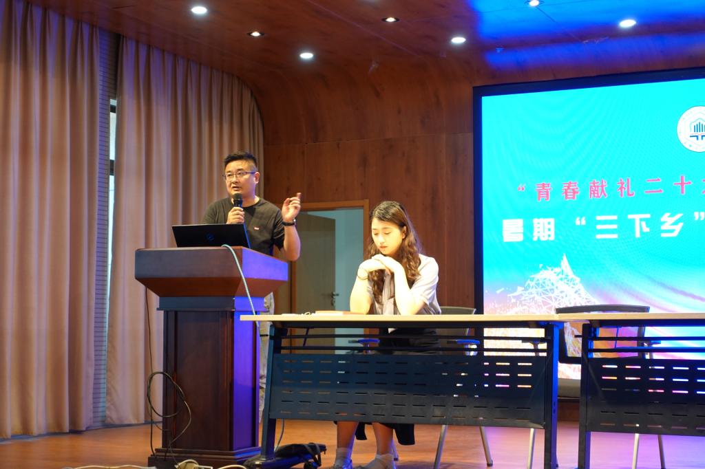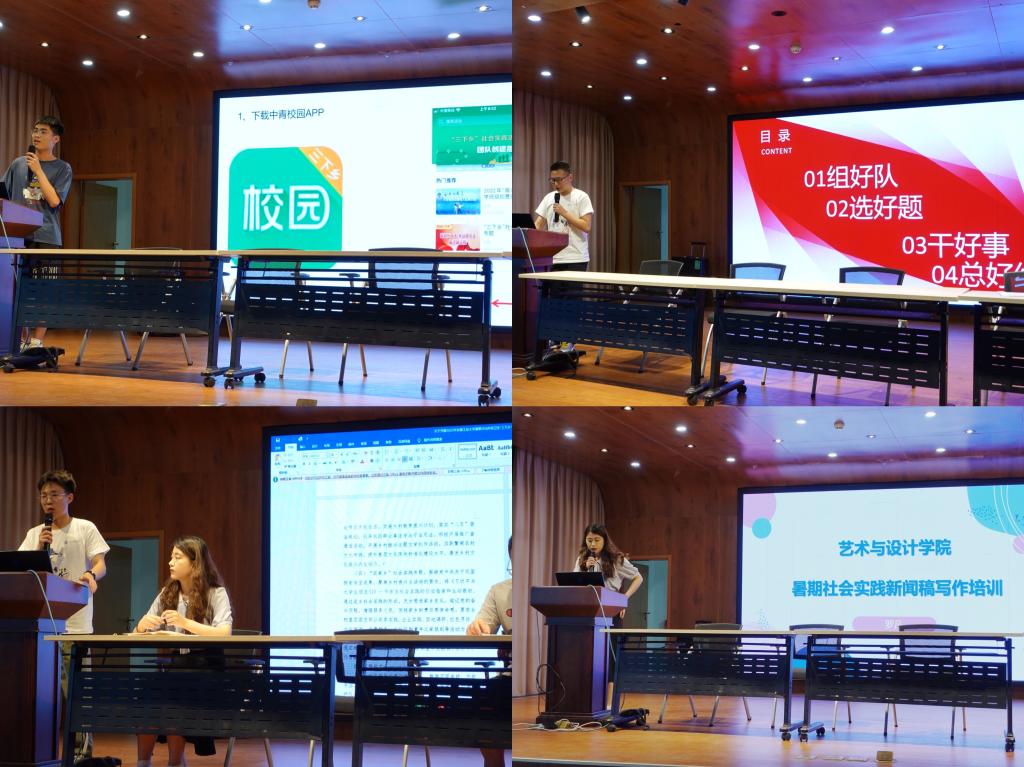 启动仪式在国歌声中拉开帷幕,接着,学院暑期社会实践团队总队长李猛同学汇报艺设学院2022年暑期社会实践组队情况,本次社会实践围绕“党史学习与理论宣讲”、“新时代文明与国情观察”、“乡村振兴与文化惠民”、“返家乡”等4个方面采取学院组队与班级个人自由组队等形式共组建了42支队伍,截止目前已获批1支国家级重点团队。2021年暑期社会实践校先进个人赵富成同学分享暑期社会实践宣传报道经验,他从“组好队、选好题、干好事、总好结”四个方面分享了他的社会实践经验,并以实际案例分析他的投稿经验。学院学生会前主席张辉同学分享了暑期社会实践宣传经验,他从细微处分享宣传报道应当注意的地方,如何提高投稿通过率。随后,2021级辅导员罗凡做了暑期社会实践宣传报道培训,她从新闻的基本概念、新闻的写作结构、具体案例分析三个部分,详细讲解如何写好一篇暑期社会实践新闻报道的标题、导语、主体和结尾。