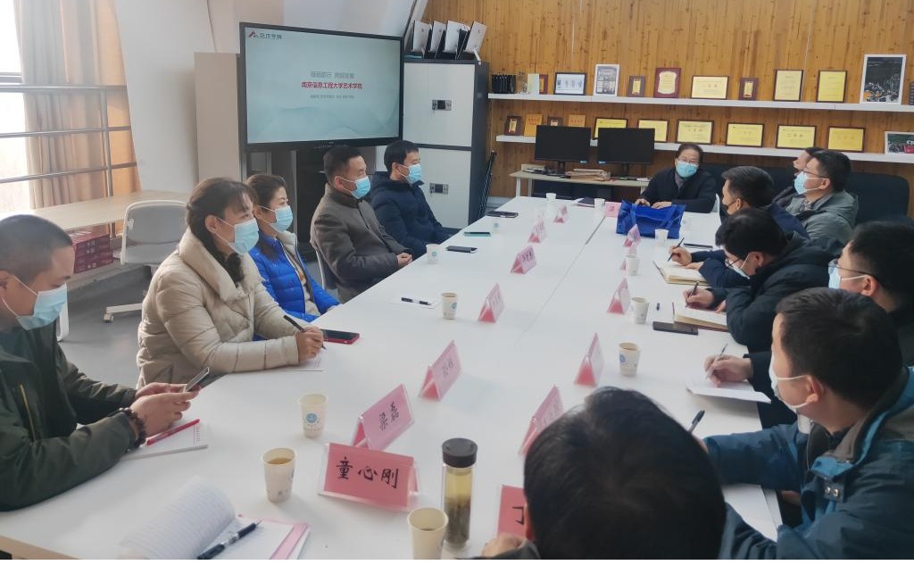 在南京信息工程大学艺术学院,双方就艺术创作、艺术类成果的认定、高层次人才引进政策、设计学高级职称评聘等方面的问题进行了细致探讨。