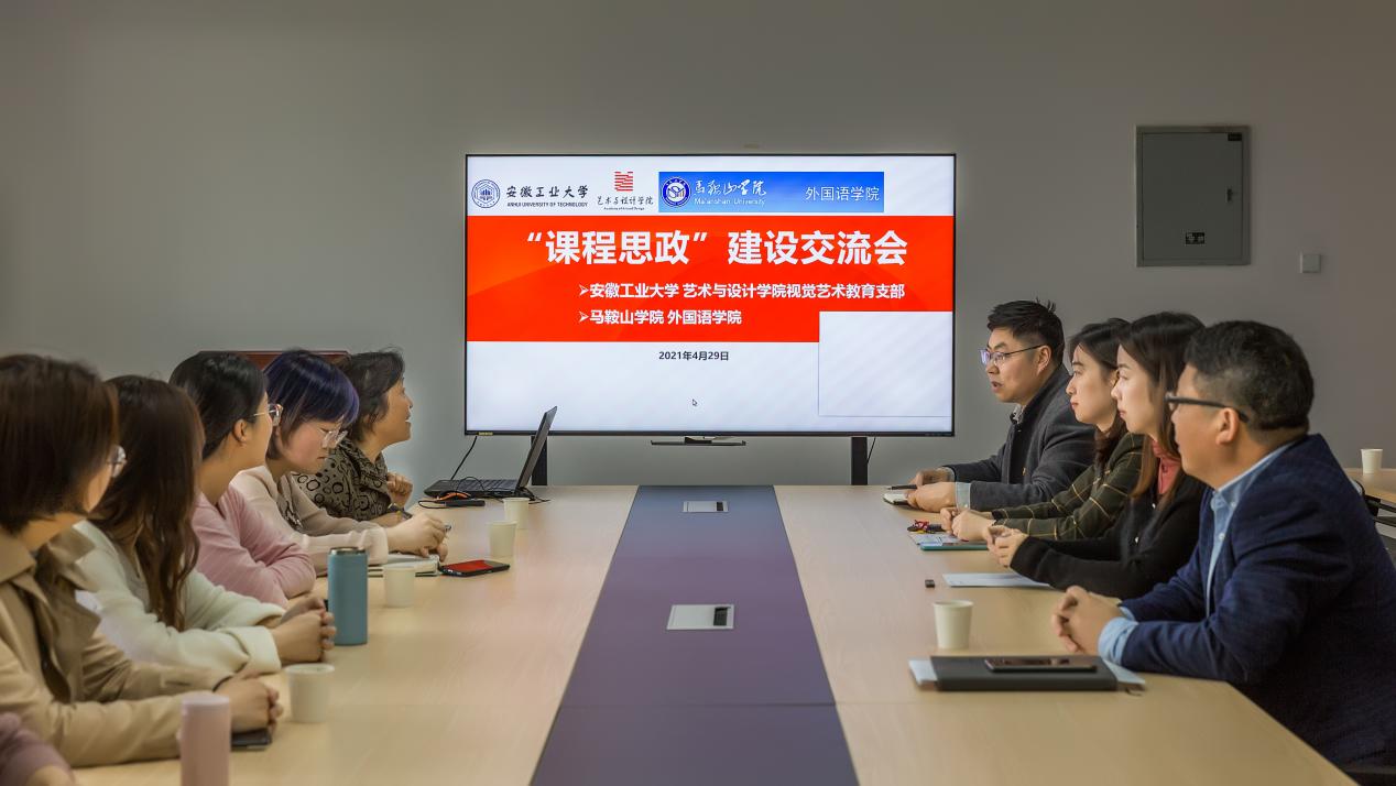 2021年4月29日下午,视觉艺术教育党支部与马鞍山学院外国语学院在437ccm必赢国际版506会议室开展了课程思政建设交流活动。437ccm必赢国际版党委书记张为清受邀参加,视觉艺术教育党支部和马鞍山学院外国语学院和李林森、谢茜、邓婷参加了交流会。