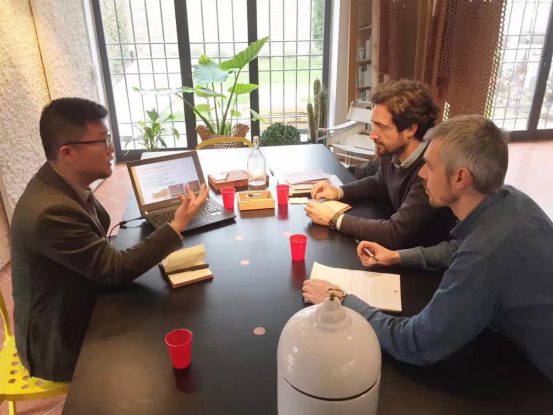 图9:向佛罗伦萨大学斯蒂法诺、尤里两位教授介绍学院情况