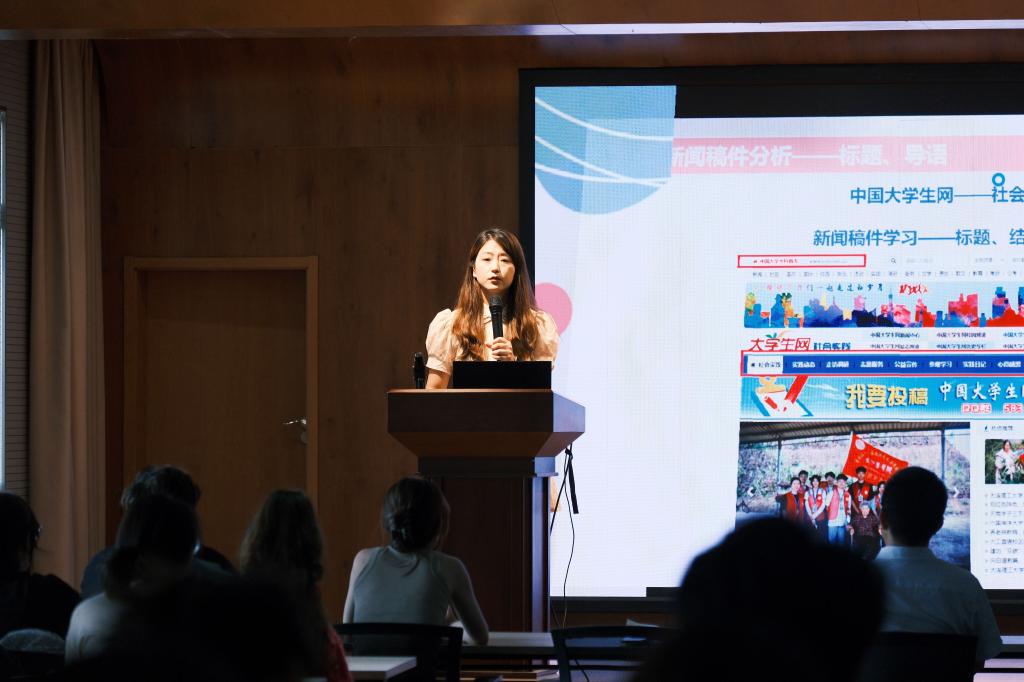 汪正在启动仪式伊始,从四个方面分析了社会实践的涵义:社会实践要涉及时事热点、涉及百姓民生、涉及专业所学;要学会整合资源、学会团队合作、学会照顾自己;要贴近实际、追求实效、多办实事;要将“见闻”转化为“见解”。与此同时还对在座的同学提出了一些要求,要努力塑造健康文明的新时代大学生形象,也树立好安工大学子良好的社会形象。2021级辅导员罗凡紧接着给在座的同学,进行了一次新闻报道的培训,从新闻的六要素、新闻的标题导语、新闻的主体三个部分来给大家讲解,如何撰写一篇暑期社会实践新闻报道。2022级辅导员秦艳秋从组织申报、人身安全、后期材料整理等方面提出了要求和建议。