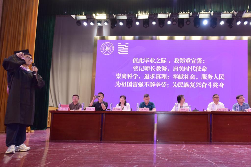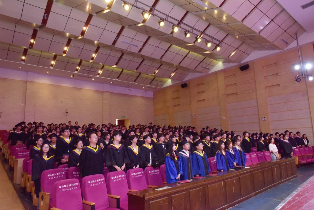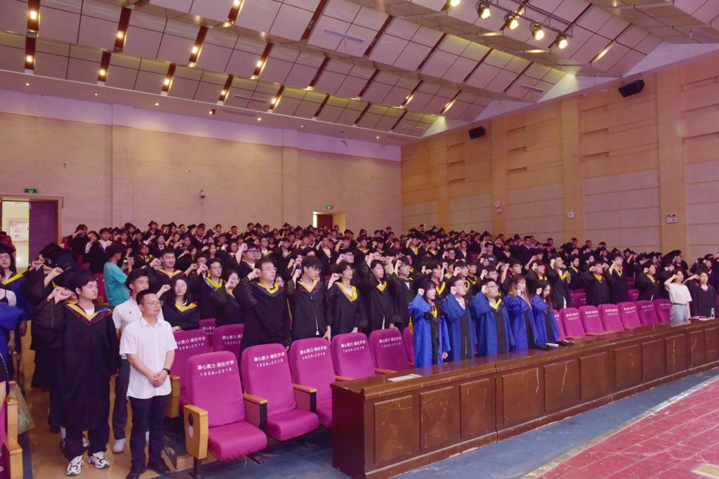 “铭记师长教诲,肩负时代使命;崇尚科学,追求真理;奉献社会,服务人民;为祖国富强不辞辛劳,为民族复兴奋斗终生!”全体毕业生集体宣誓,他们宣誓的铮铮言语,是即将在新的征程里扬帆起航的心声。