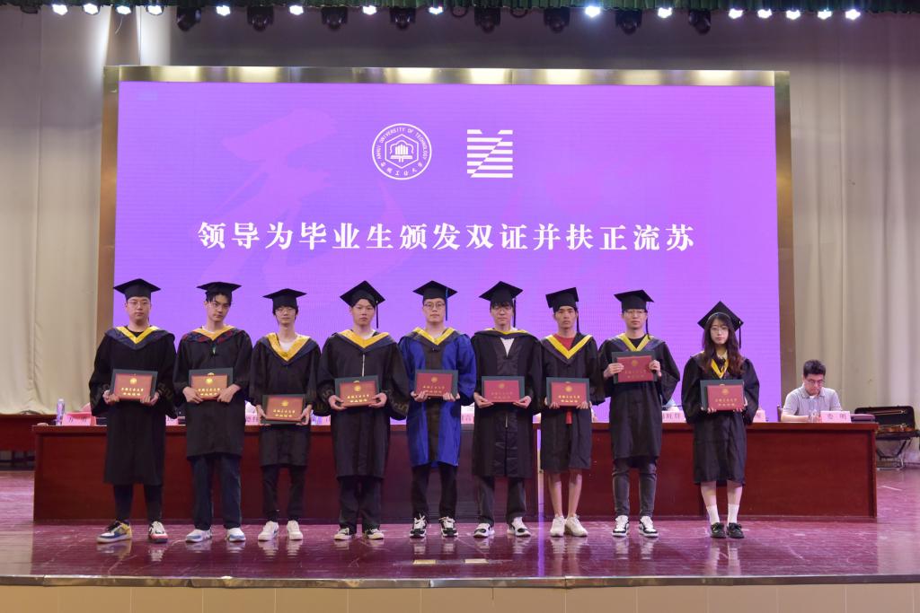 随后,典礼进行到最庄严的环节——学位授予仪式。参会领导为2023届毕业生逐一拨穗正冠、颁发毕业证书、授予学位并合影留念。