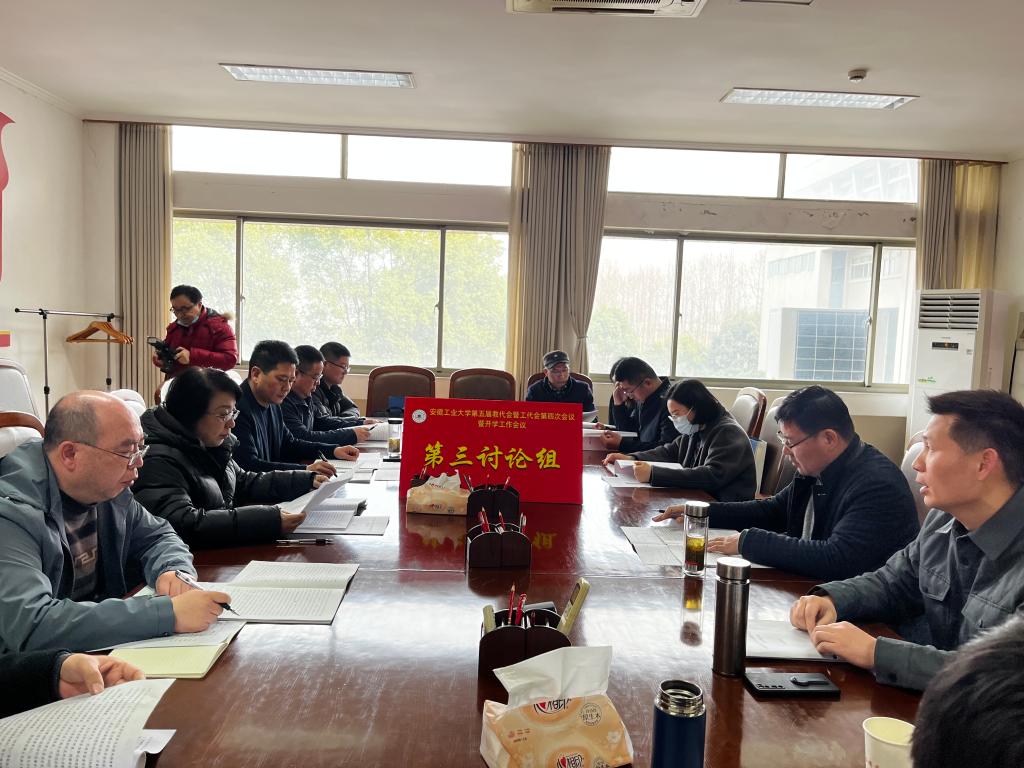 会上听取了校长魏先文作题为《勇担新使命 展现新作为 奋力书写教育强国教育强省建设的安工大篇章》的工作报告。报告指出,2023年,学校全面学习宣传贯彻党的二十大精神,坚决落实中央和省委决策部署,全校师生凝心聚力、攻坚克难、积极谋划、扎实推进,努力实现学校内涵式高质量发展,学校在国内知名特色高水平大学建设的征途上迈出了新步伐,取得了新进步。报告部署了2024年的六项重点工作:聚焦政治引领,坚持加强党的全面领导;聚焦铸魂育人,全面提高人才培养质量;聚焦内涵建设,持续增强学科科研能力;聚焦人才强校,着力打造一流师资队伍;聚焦效能提升,统筹优化办学资源环境;聚焦开放办学,持续拓展融合发展成效。