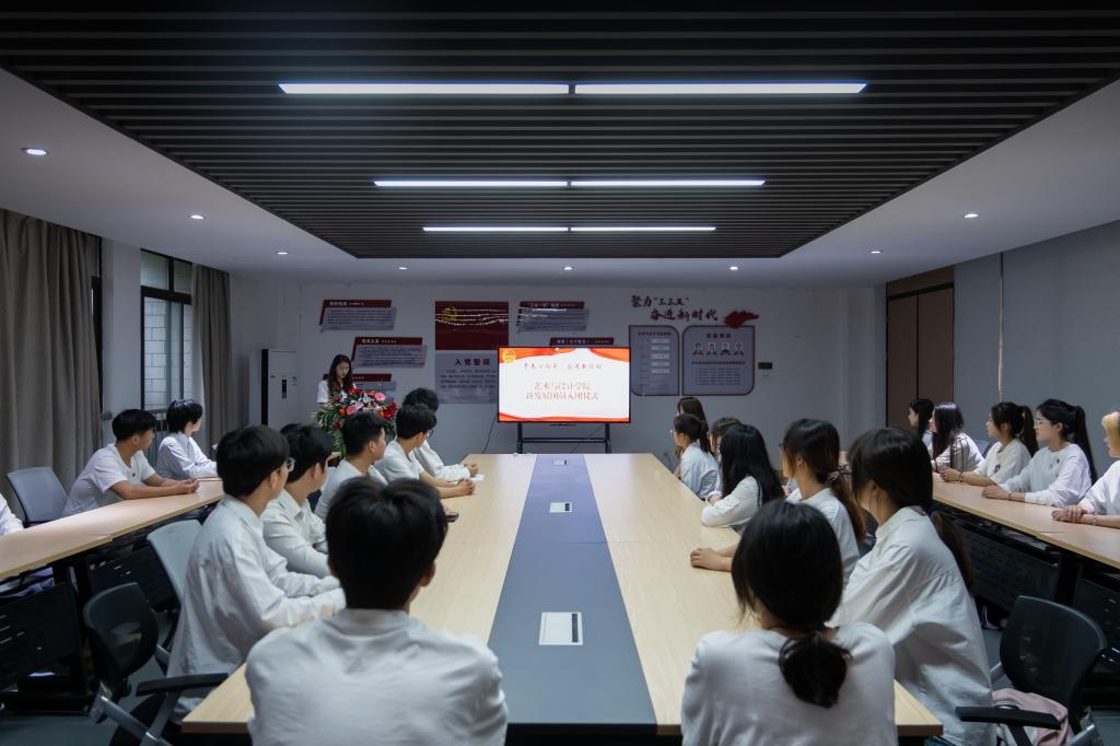 罗凡带领大家共同学习习近平总书记五四青年节对全国广大青年寄语精神,新发展团员白云伸表示作为437ccm必赢国际版的一份子,会努力培养创新意识,发散设计思维,为学院培养复合型设计人才而不懈努力,为推动我国设计行业发展添砖加瓦。新发展团员黄孝楠表示会始终以习近平总书记重要讲话精神为指引,争做新时代的好青年,为推动社会的进步和国家的强盛不懈努力!
