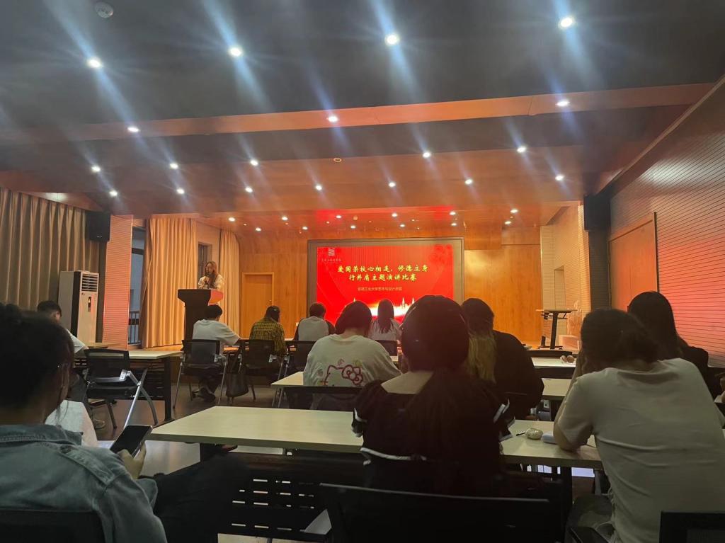 为进一步激发学生爱国情怀与荣校意识,弘扬社会主义核心价值观,院于5月21号在艺设楼401开展“爱国荣校心相连,修德立身行并肩”主题演讲比赛,团委学生会主席及部长出席比赛并担任评委。