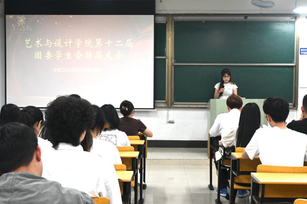 会议伊始,汪正公布第十二届团委学生会名单。随后,第十一届团委学生会主席刘铭璇进行发言,她回顾了过去一年的工作历程,分享了自己在团委学生会中的成长与收获,并表达了对新一届团委学生会的祝福和期望。新一届主席姜海信代表第十二届团委学生会进行发言,他首先感谢了学院领导和老师们的信任与支持并对上一届团委学生会的辛勤付出表示敬意,他承诺将不辜负大家的期望,带领新一届团委学生会团结一心、锐意进取,为学校的建设和发展贡献自己的力量。发言结束后,汪正为第十一届团委学生会人员颁发聘书并讲话。汪正表示,团委学生会是学生自我管理、自我教育、自我服务的重要组织,希望新一届团委学生会能够继续发扬优良传统,积极创新,为学校的建设和发展贡献自己的力量。大会最后,全体人员前往艺术与设计馆门前合影留恋。