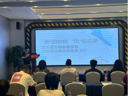 最终,我院王正乐同学最终获得国一的好成绩,并进行路演。此次路演全方位的展示了其为佰草集品牌设计的内在涵义与创新方案,并从材料、工艺、平面、结构等不同角度分别阐述了产品创新点,赢得了在场师生与选手们的一致认可与赞扬。