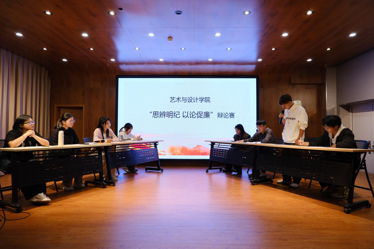 为丰富大一新生的校园文化生活,引导学生们深入思考廉洁自律、道德规范以及社会公正等问题,进而促进校园廉洁文化的建设与发展,学院于10月10日在艺设楼北401举行“思辨明纪 以论促廉”主题辩论赛。本次比赛分专业组建队伍,共有4支队伍参加比赛,数百名师生前来观看,场面异常热烈。
