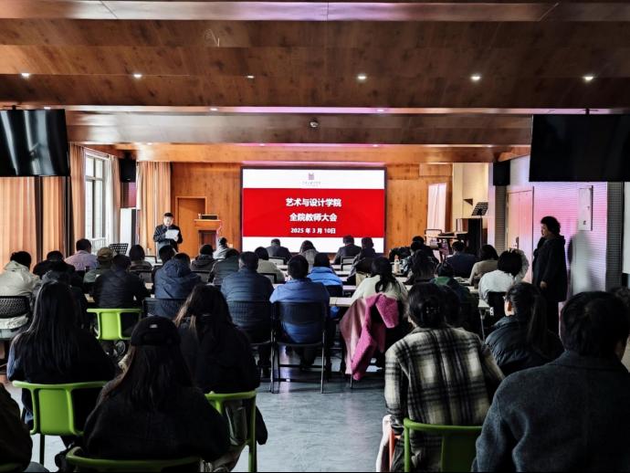 会议首先由方勇领学了习近平总书记2025年3月6日在看望参加政协会议的民盟民进教育界委员时的重要讲话精神,随后院领导班子分别作述职述德述廉汇报,详细总结了我院过去一年在党建、教学、科研、学科建设、人才队伍建设、国际交流合作等方面取得的突破性进展,并围绕新学期各项工作作具体部署。宋益民强调,去年我院在科研团队建设、教育部课题等省部级项目课题方面成果丰硕,新学期要力争在国家级项目上取得突破。佘醒强调,教学审核评估工作开展在即,全体教师要高度重视,狠抓教风学风,并做好教学资料袋等过程性工作。方勇强调,去年我院在学籍、考试等方面保持“零违纪”“零作弊”“零记录”,就业和征兵工作更是在全校范围内取得就业率和征兵指标达成率双第一,新学期要在全体教师的共同努力下继续保持这一良好态势。肖旺群总结强调,2025年学院将重点围绕“博点申请要素积累”“国家基金”“大型横向项目”等目标发力,并号召全院广大师生积极拥抱AI、学习AI、运用AI,以创新思维推动艺术教育与时代需求同频共振。