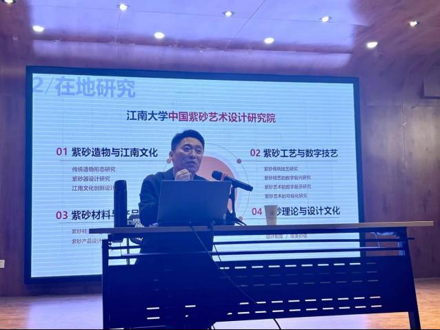 在学科建设部分,他重点阐述了轻工特色、江南文化传承、未来转型方向、五个研究方向、地域资源利用以及学科交叉融合等内容。在地研究方面,他特别提到江南大学中国紫砂艺术设计研究院。针对设计教育的革新,廖院长指出,当代技术与社会问题对设计学科提出了新的要求,需要通过宏观视野下的专业深耕、整合创新驱动的专业综合、产业变革引导的专业交叉以及教育反思引发的内容革新来应对。他强调,设计学院始终着眼于时代经济、社会与文化发展趋势,服务党和国家重大战略需求,将中国设计历程、生态文明与文化自信等价值追求全面深度融入人才培养体系的顶层设计,不断思考如何培养以设计学途径协同解决国计民生问题的领导者、先行者与实践者。最后,廖院长总结道,培养适应中国未来发展的一流设计师与设计研究者需要具有审美力、设计力、创造力的未来设计师,让创意思维、审美实践与未来美好生活相融合发展。