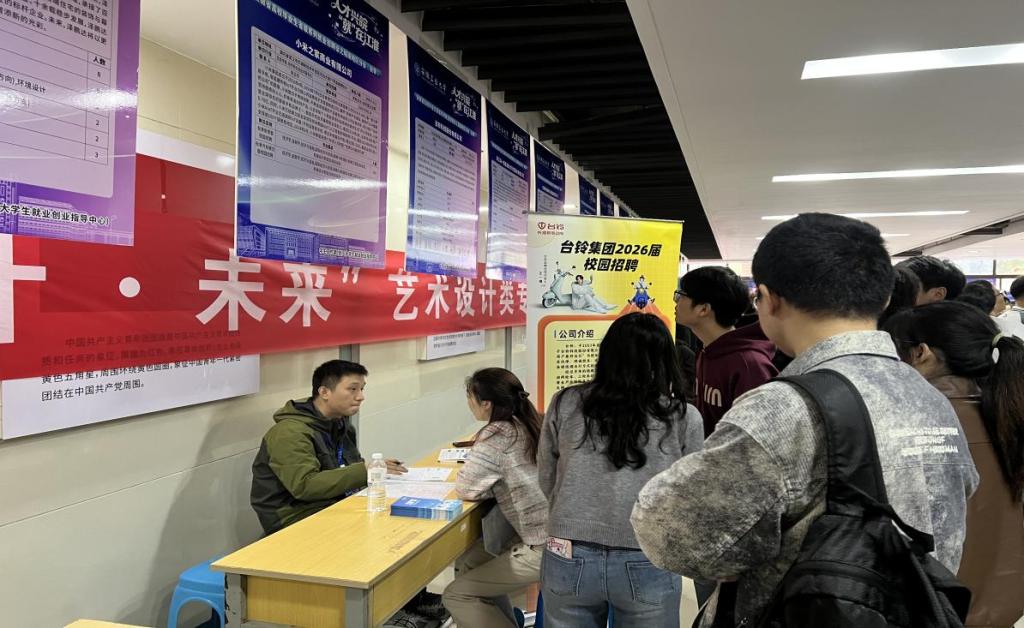 11月8日,我院在新大学生活动中心一楼成功举办“设计·未来”艺术设计类专场招聘会。学院领导班子全体成员、毕业班辅导员、部分毕业班班主任、导师与2026届本科及硕士毕业生共同参与了本次招聘会。此次招聘会为即将开启职业生涯的艺术设计人才提供了与业界对接的重要平台,现场气氛热烈,秩序井然,获得参会各方一致好评。