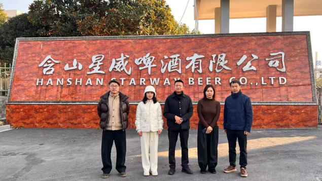 第三站,调研团队走进含山星威啤酒有限公司,围绕企业品牌升级与人才协同展开座谈交流。双方重点就啤酒产品包装优化、品牌视觉形象系统设计、市场传播策略等议题进行了充分沟通,同时围绕学生实习就业、创新创业支持、企业资源入驻校园、产教融合项目合作等方向达成多项共识。企业方对学院学生的专业能力与实践潜力给予高度关注,期待通过校企协同实现品牌焕新与人才培养“双向赋能”。