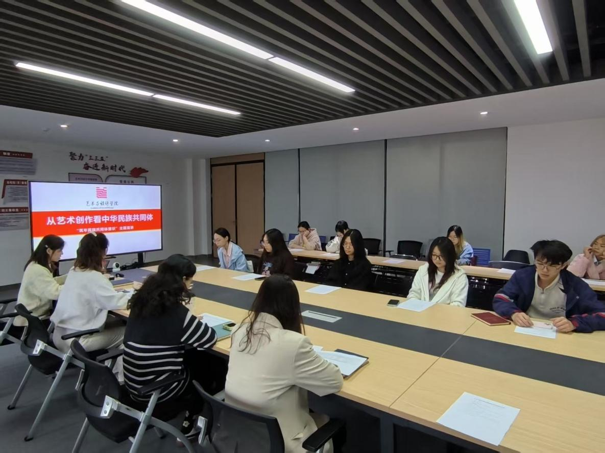 座谈结束后,学院少数民族学生工作专项老师王倩倩以《设计中的“同心圆”——从艺术创作看中华民族共同体》为题作政策宣讲。宣讲从民族纹样文创产品等设计案例入手,生动阐释了中华民族“多元一体”的深刻内涵,指出正如一幅优秀的设计作品需要多种元素和谐共生,中华民族共同体也需要各民族守望相助、共同发展。宣讲还简要介绍了国家民族政策及学校的相关支持措施,鼓励同学们发挥艺术专业特长,将民族团结元素融入课程作业和创作实践,用画笔和设计讲述身边民族团结故事。