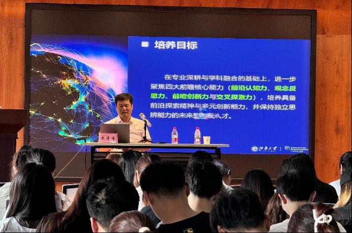 在学科融合发展方面,胡教授重点阐述了学院如何在坚守设计本体的同时,推动设计与工科、人文、信息、管理等多学科的深度交叉融合,依托“设计+技术”“设计+人文”等复合路径,形成面向未来的创新型学科生态。在人才培养机制方面,胡教授特别提出“解决真实社会问题是设计教育的出发点”,强调当前技术演进与社会议题对设计人才提出了更高要求,亟需构建以问题驱动为核心的教育理念。学院以服务国家重大战略与区域社会发展需求为导向,深化设计思维与工程逻辑、人文理解、系统认知的整合训练,培养具备系统性思维与实践能力的未来设计引领者。