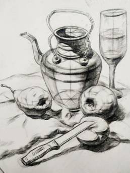 结构素描又称“形体素描”。结构素描的特点是以线条为主要表现手段, 排除光影的因素,用单色线条来表现物象,强调突出物象的结构特征。