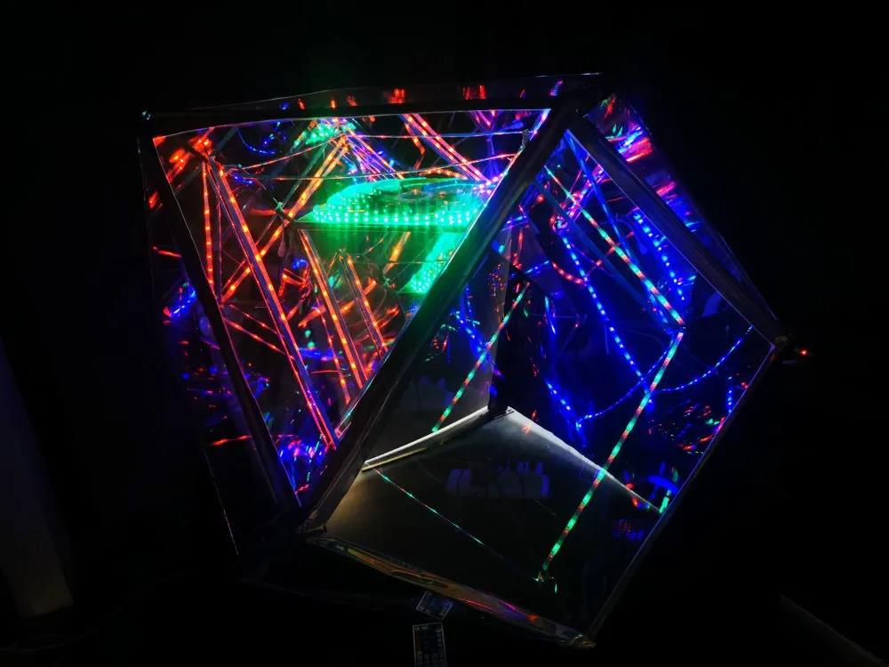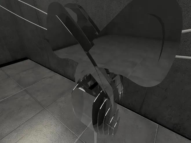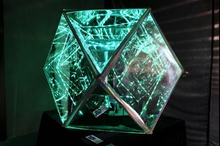 设计说明:作品想借助形式美来构建与观众之间的默契,不断变化的城市影像被抽象地融入了我的作品中,无论观众在我的作品里感受到的是奇幻还是不解,都是一种和观众交流的全新的艺术语言,最使人着迷的就是艺术品的不确定性,在窥视反射的洞口前,谁都无法确定你能看到什么样奇幻的城市。