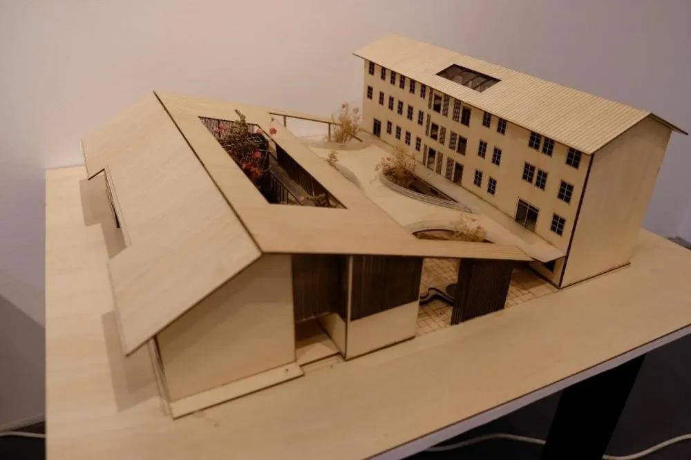 设计说明:老旧建筑代表了运漕古镇的文化底蕴,所以在这次展馆的设计上,作者采用了生存与生长的方式进行设计。将建筑通过块体堆积的方式组合,保留特色的砖墙等元素,“清理”内部及废弃的结构,让其新生。