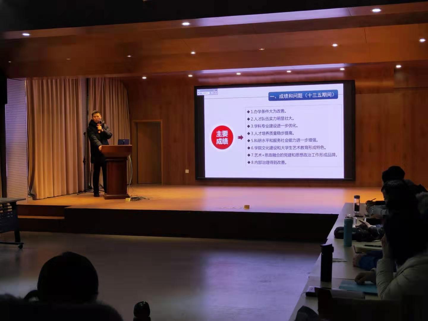 副校长顾明言在指导讲话中指出,艺设学院要充分发挥专业特色,要在校园文化建设、艺术+思政、意识形态的各方面做出贡献。目前学校和学院的发展面临机遇和挑战,无论在国家级课题、一流专业等各方面,都要付出巨大努力。要在学校党建和事业发展中做出自己的贡献,年轻教师要把自己职业发展与学校事业发展紧密结合,在学校发展大潮中努力奋进,做出贡献的同时,也提升了自己的内涵。相信在学院党委的领导下,艺设学院全体教职工一定会凝心聚力,谋划好“十四五”,为建党100周年献礼。