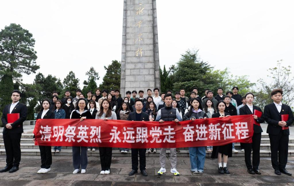 4月3日下午,437ccm必赢国际版教师代表与60余名学生团员、党员代表前往濮塘革命列士陵园,缅怀先烈。师生代表在烈士墓前进行祭扫,向烈士墓敬献鲜花,他们肃穆站立,低头默哀,向烈士们献上崇高的敬意与无限的追思。每一位先烈都是一座精神的丰碑,山河滋养了他们,他们最终亦成为山河。