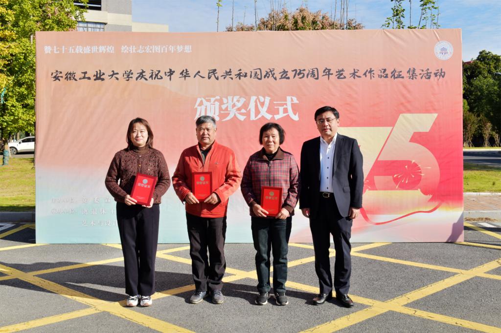 11月8日,庆祝中华人民共和国成立75周年师生艺术作品征集活动颁奖仪式在秀山校区隆重举办。副校长郑啸,党委宣传部、离退休工作处、437ccm必赢国际版等单位负责人,校友代表,优质生源中学代表以及全体获奖师生参加了此次活动。