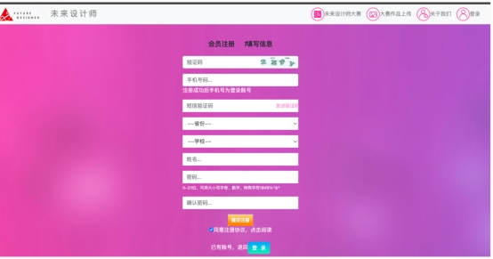 1.登录大赛官网:www.ncda.org.cn,点击作品提交按钮。点击“注册”按钮(不用输入信息)。并输入个人信息,完成注册。