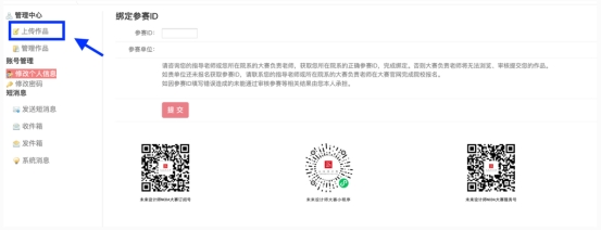 3.点击“上传作品”,选择作品类别,填写作品相关信息。请务必仔细填写,相关信息将打印在证书上,提交截止后不可修改作者及指导教师信息。