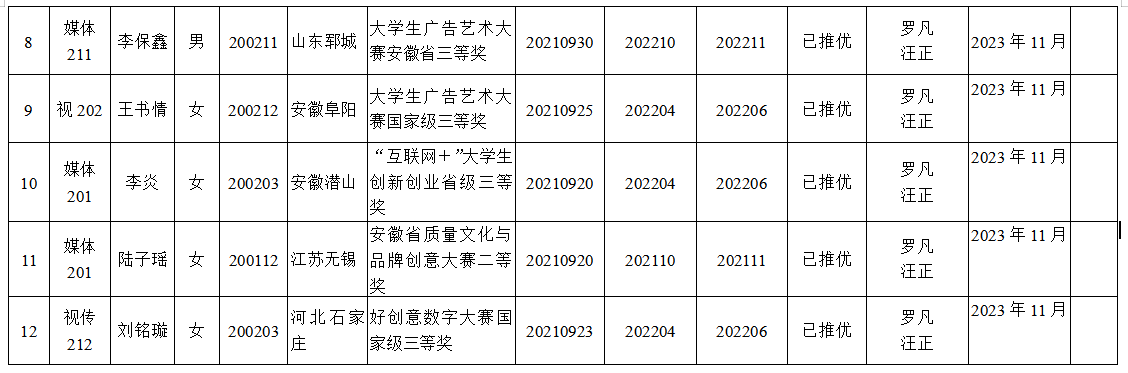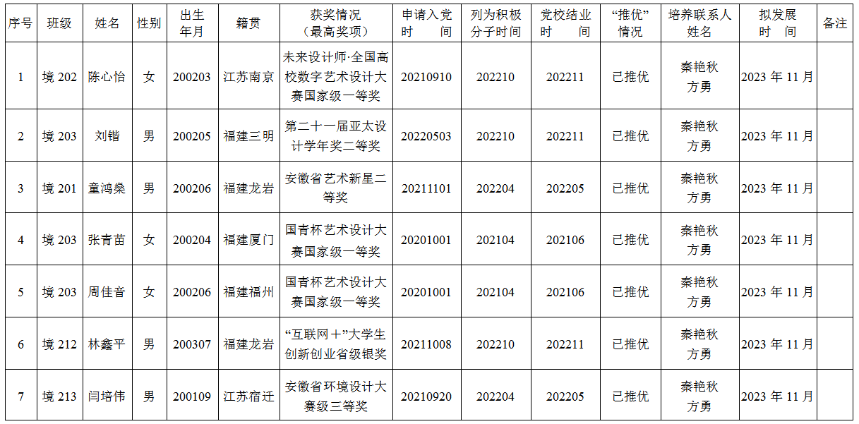 注:以上人员的公示时间自2023年11月1日至11月7日止;联系人:秦艳秋、罗凡;联系电话:0555-2315736。